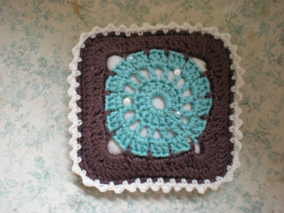 Søt nålepute heklet i 100% bomullsgarn. Str ca 11x11cm m/kant.