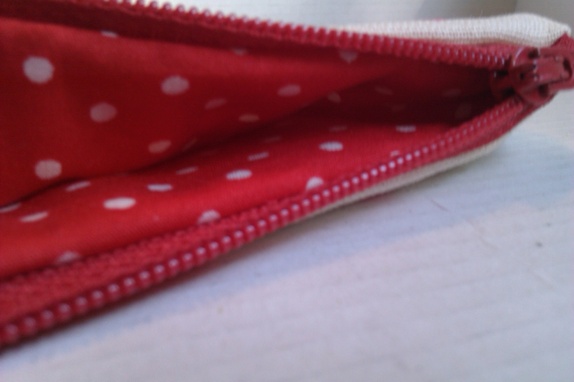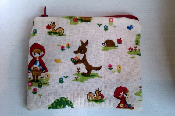 Pung med Rødhette og ulven, rød glidelås og rød polkadot innerstoff.