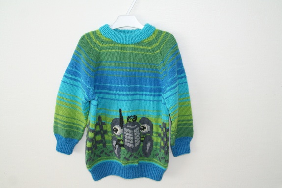 Håndstrikket genser med gråtass motiv. 3-4 år.