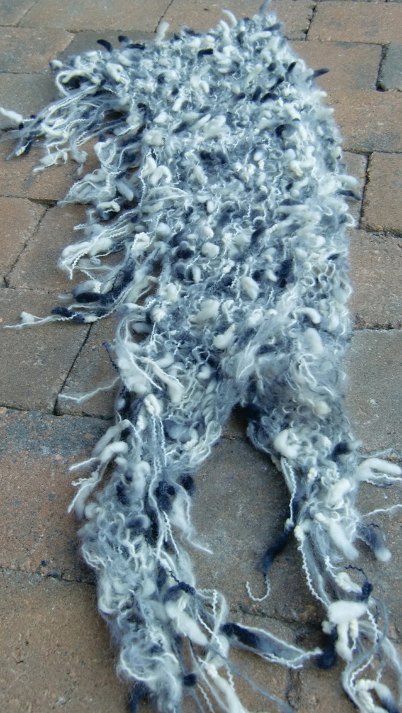 Skjerfsjalet er ca 2 m langt og 30cm bredt (på det bredeste)