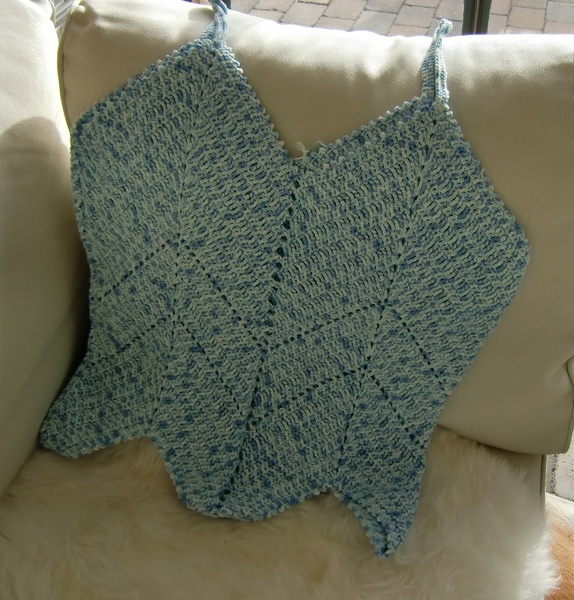 Mål:Rundt bysten 94 cmNede 84 cmHel lengde 50 cm + stropper = 60 cm