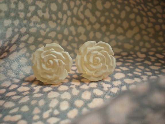 Nydelige kremhvite øredobber i rose-fasong.