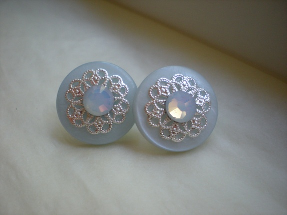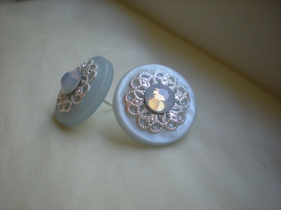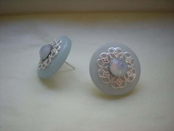 Lysblå øredobber med sølvfargede detaljer og hvite swarovski-stener.