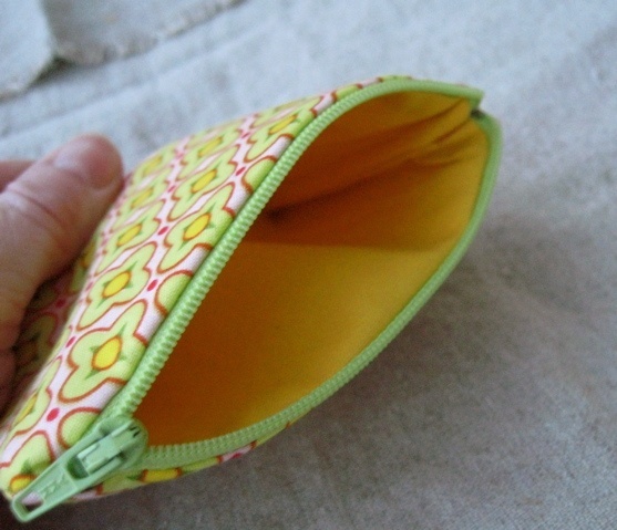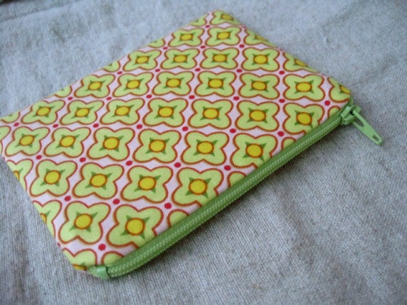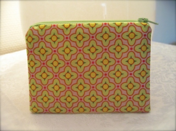Liten pung laget i lekker bomull. Rosa, grønne og gule blomster (Amy Butler).