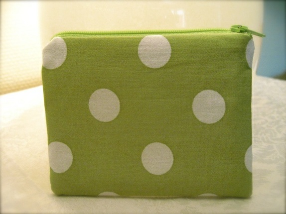 Liten pung til mange ting - grønn med hvite bomber