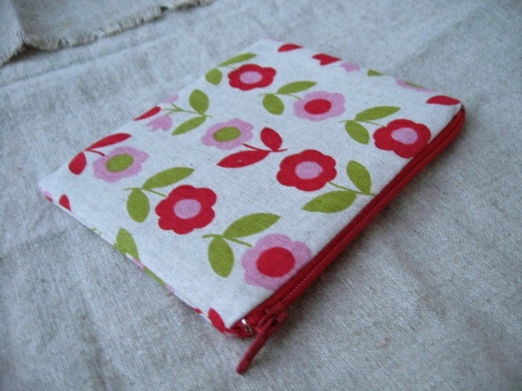 Liten pung laget i japansk bomull/lin. Foret med et hyggelig stoff i bomull med små blomster.