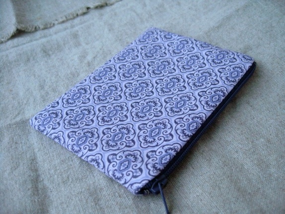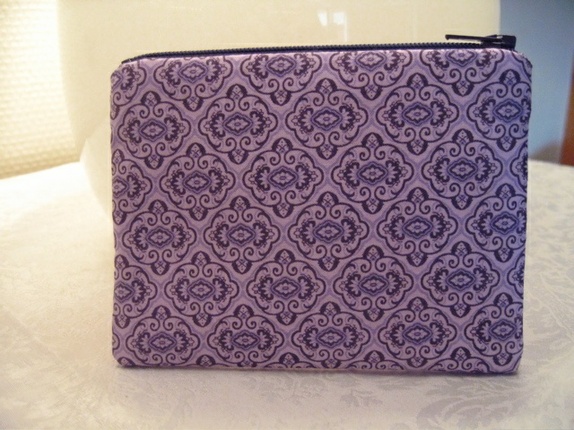 Liten pung laget i bomull. Foret med et hyggelig stoff i bomull med små ruter i lilla.