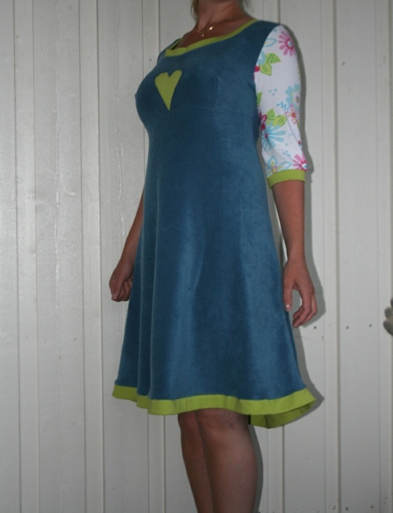 Deilig petrolblå kjole i str M/L. Innsnitt på brystet og innsvingt i livet for feminin fasong. God vidde over hofter og i skjørtet. God å ha til kjølige sommerkvelder.