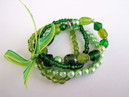 Brukes sammen eller hver for seg. Ulike glassperler i forskjellige grønne toner.Elastisk, slik at de passer de fleste.