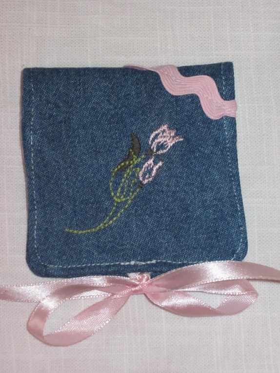 Etui med bodert lite bilde og påsydde bånd.Perfekt plass til 8 tamponger.