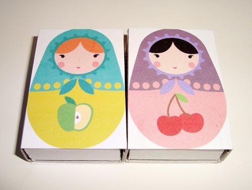 PRODUKTBESKRIVELSE: 2 stk. små fyrstikkesker med bilder av russike dukker.