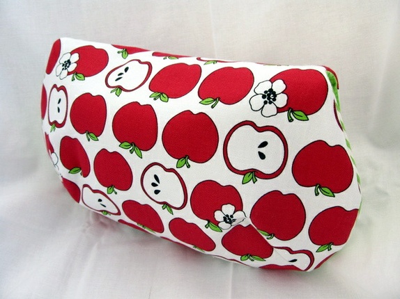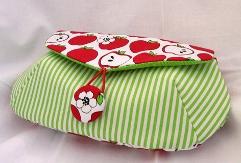 Liten veske med røde epler og grønne striper