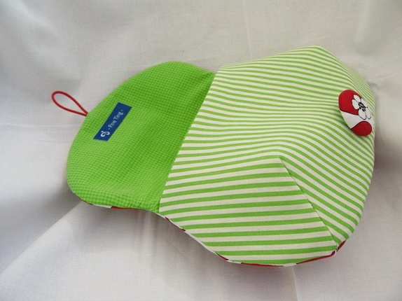 Lekker veske laget i artig stoff med røde fristende epler og grønne striper.