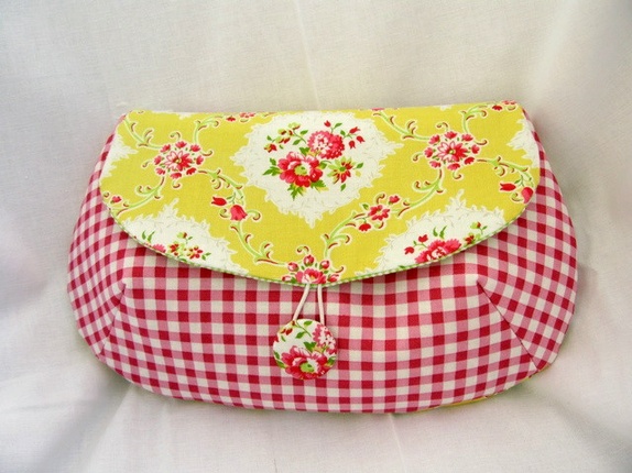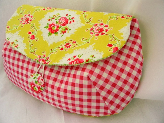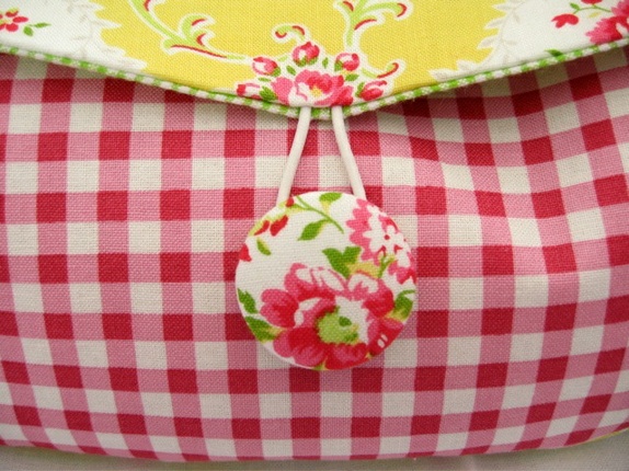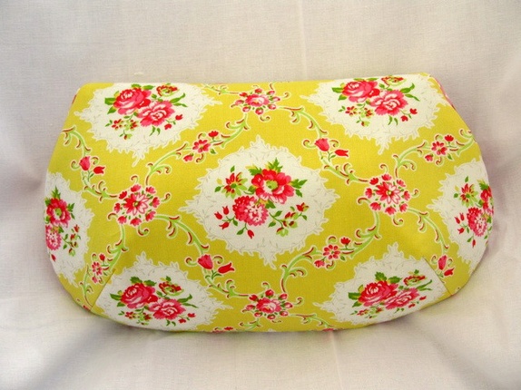 Lekker veske laget i lekkert stoff i gult med rosa roser.