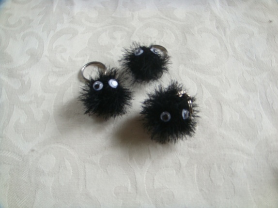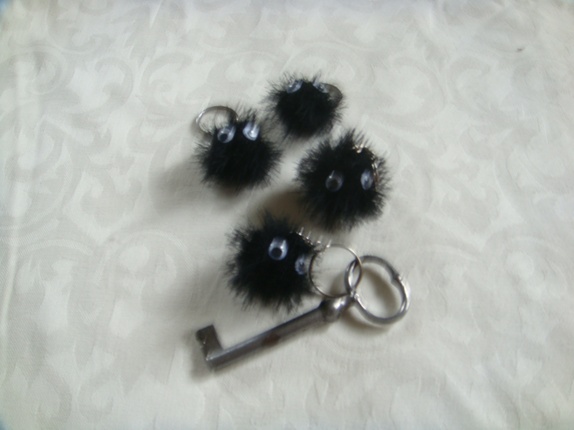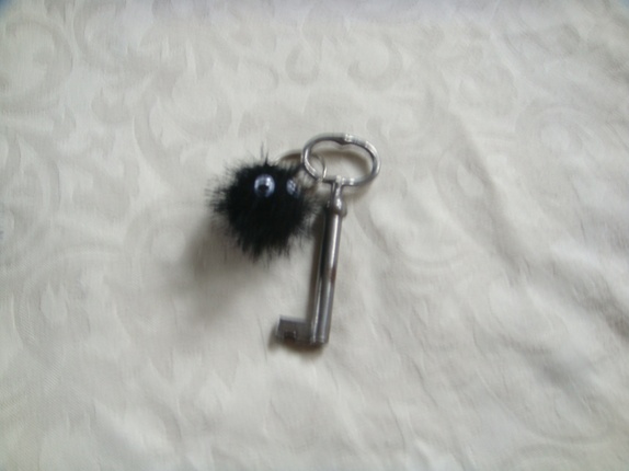 Buster er strikket i Orkide og har på sydde plastikk øyer.Han er 8 cm lang med lenke og ring