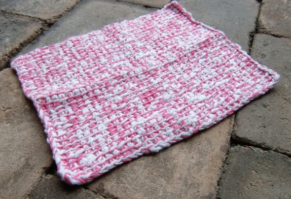 Rosa og hvit klut er ca 20 x 24 cm.