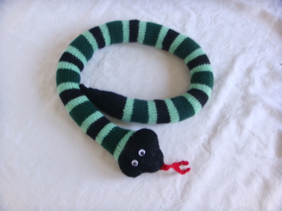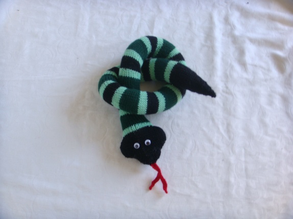 Slangen er 108 cm uten tunge.Og har på sydde øyne.