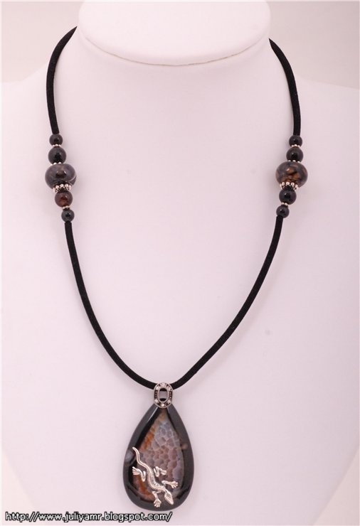 laget av agatperler og metall detaljer (51 cm.+ 5 cm. pendant)