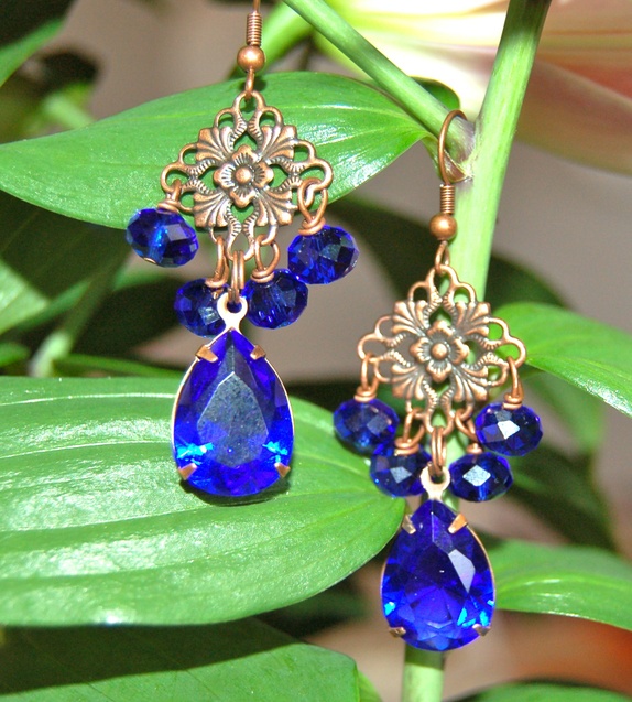Kongeblå øredobber i kobber med tjekkisk krystallsten. Utrolig vakre og med en helt spesiell glans.