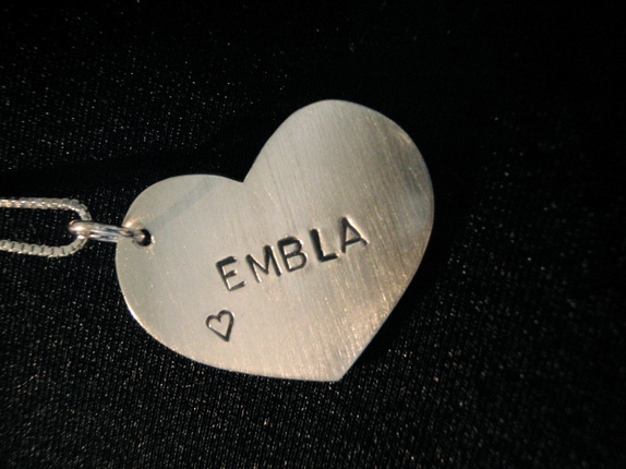 Koselig hjerteanheng med den teksten du selv ønsker.Sølvkjede er inkludert i prisen