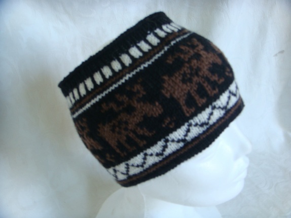 Pannebåndet er i størrelse dame.Høyden er 14,5 cm.Det er strikket i Daletta ( 100% ren ny ull) Kan vaskes i maskin på 40 grader.