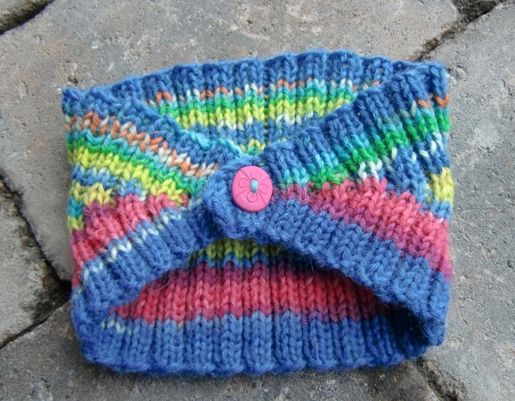 Deilig og mykt pannebånd i ull, strikket i vrangbordstrikk.