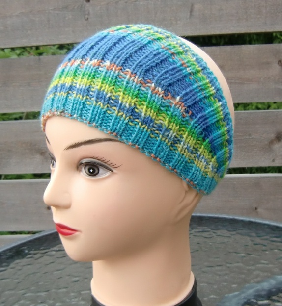 Deilig og mykt pannebånd i ull, strikket i vrangbordstrikk.