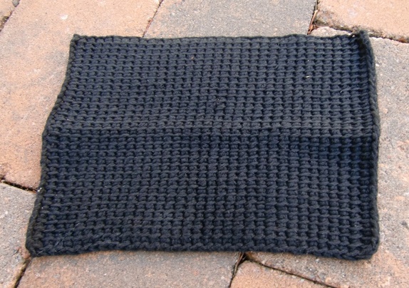 Sort klut er ca 18 x 24 cm.
