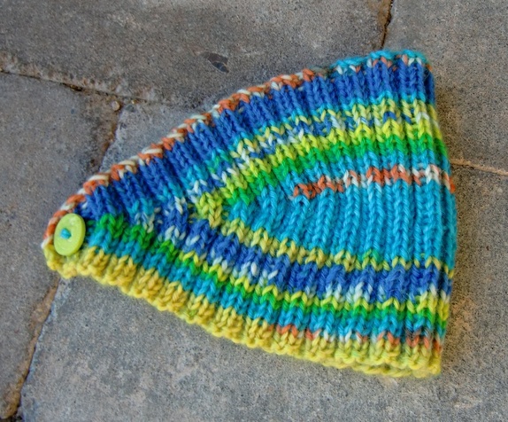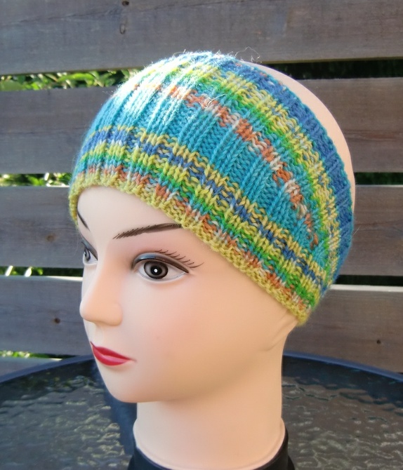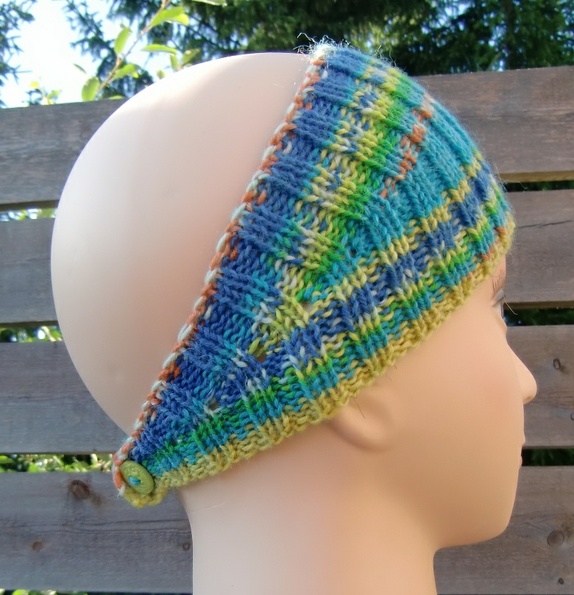 Deilig og mykt pannebånd i ull, strikket i vrangbordstrikk.