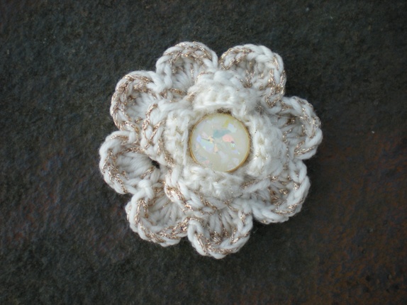 Str. 7cm i dia, 4cm lang påsydd nål bak.