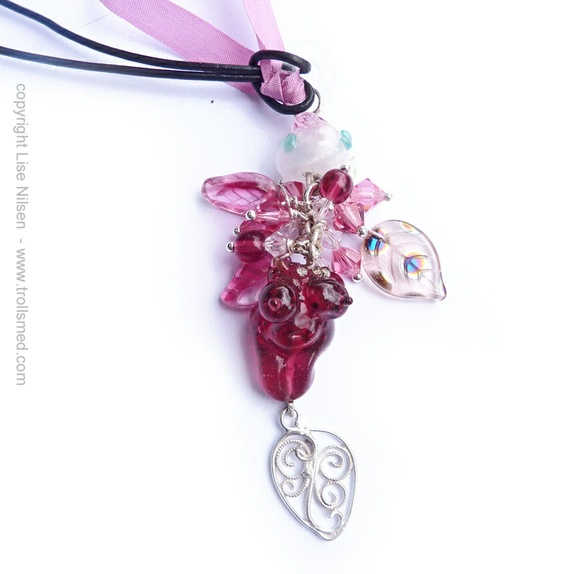 Sølv filigran, håndlaget glass og tsjekkiske perler.
