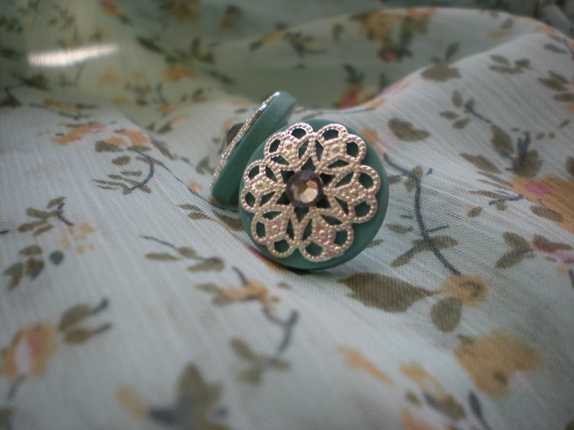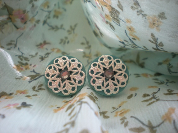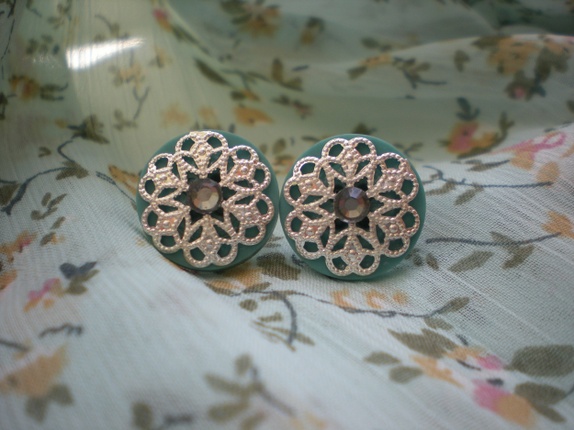 Mørkegrønne øredobber med sølvfarget pynt og små glitrende swarovski-stener.