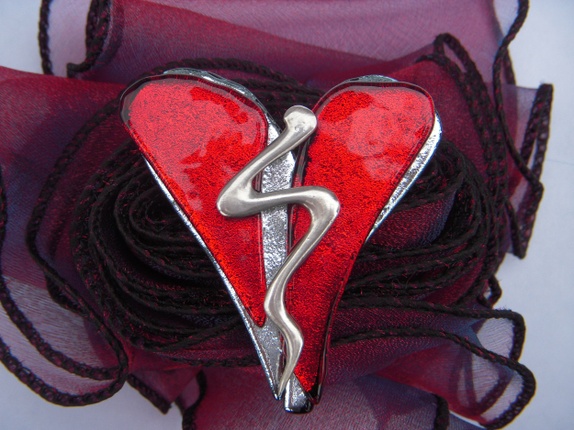 Helt unikt rødt glasshjerte, som jeg har designet en S i sølv, og lagt oppå. Meget spesielt. Sølvoppheng (rør)
