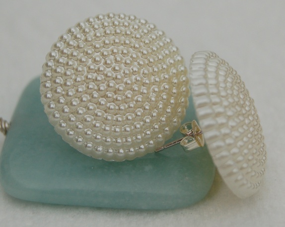 Morsomme store øredobber med vinage akryl cabochon. Disse ser ut som de består av mange små perler. Ørepinnen er selvsagt nikkelfri.Se etter tilhørende ring i min butikk :-)