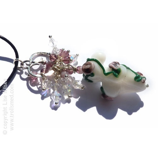 Dersom du ønsker kan Trollsmeden lage DIN gudinne i den fargen du ønsker, i mange farger, med blomster, med perlekjede, eller helt enkel. De er 3-4 cm høye og så kommer pynten i tillegg, o g de henger som dusk i front.