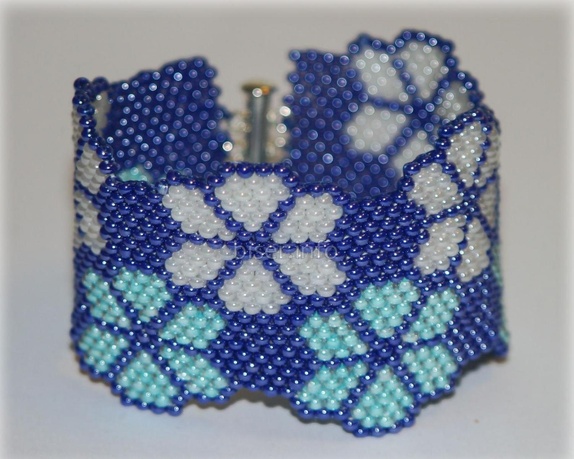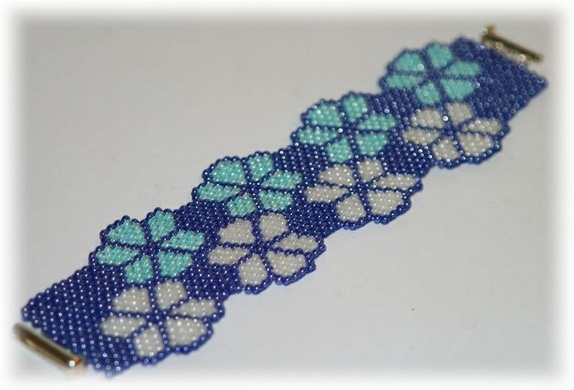 Et armbånd laget av tsjekkiske perler. Lånen er sølvfarget.Teknikk: mosaikk.Lengde 17 cm.