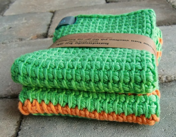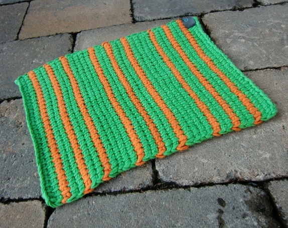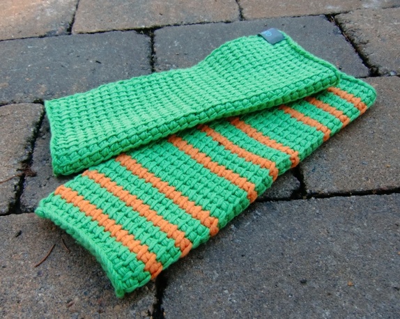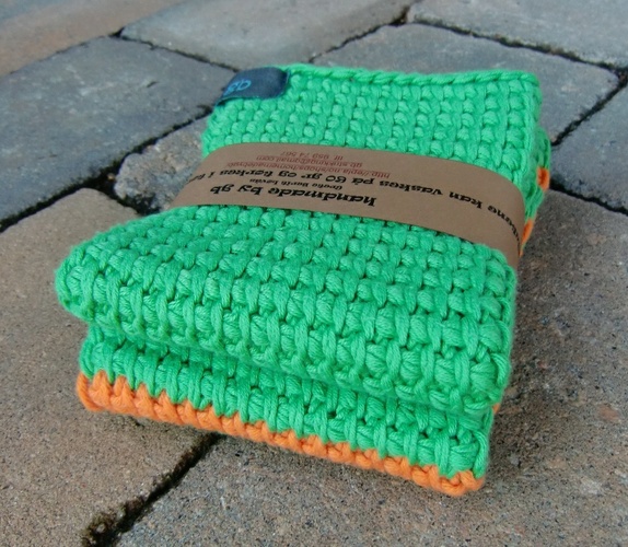 Grønn og oransje klut er ca 20 x 26 cm