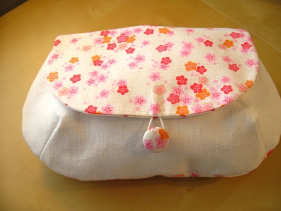 Liten veske - hvit lin og japansk bomull med kirsebærblomster
