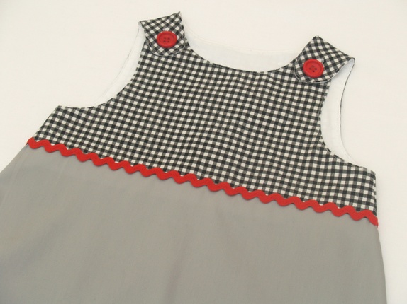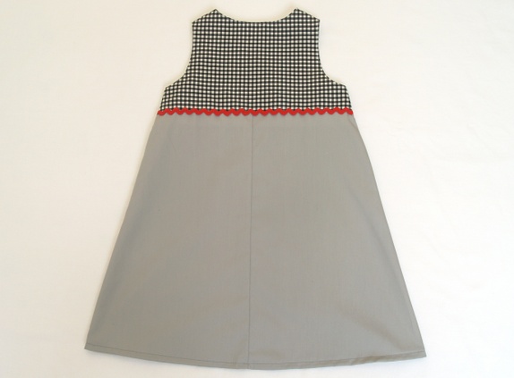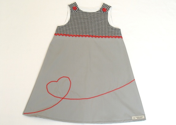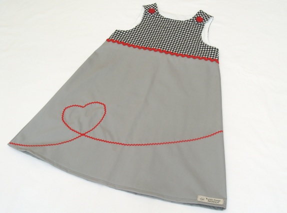 Grå redesign kjole med sort og rødt, 5-6 år
