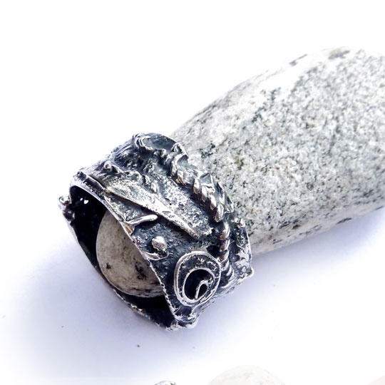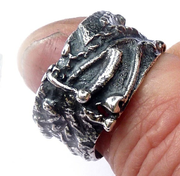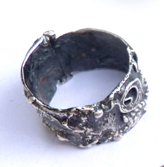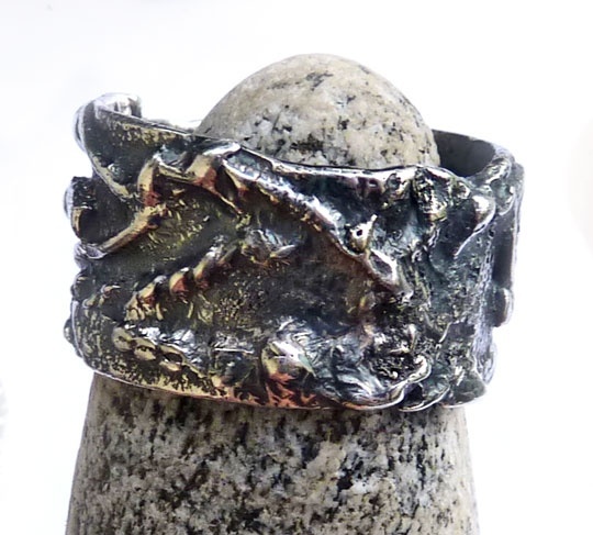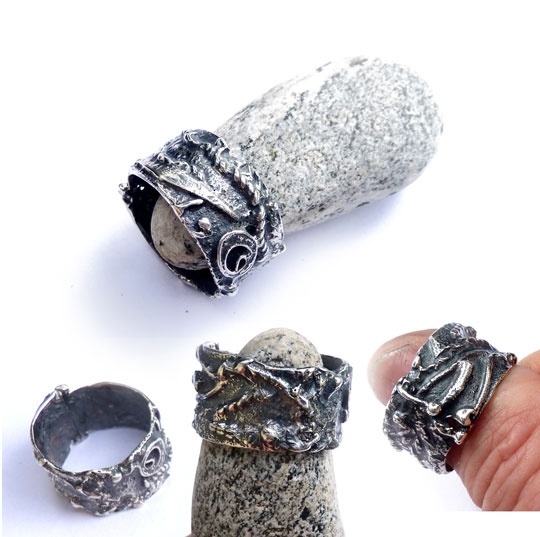 Unik, morsom ring som jeg har laget ved å smelte, slå, smelte mer, vri og banke og file på sølvrester. Det er en morsom prosess, som krever litt tid for at det ikke skal se helt tilfeldig ut.