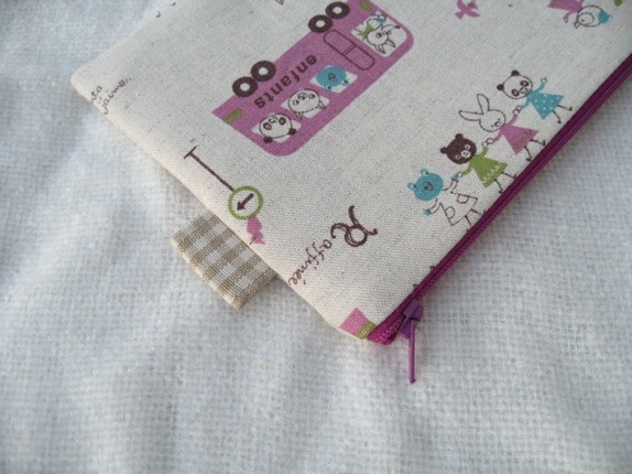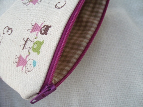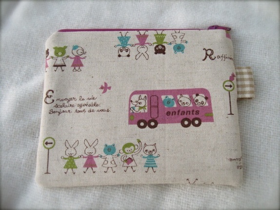 Pung laget i japansk stoff i lin og bomull. Foret med et smårutete stoff i beige og hvit.
