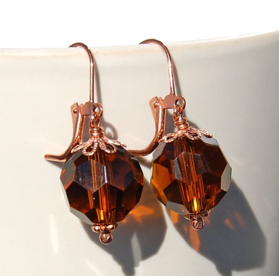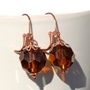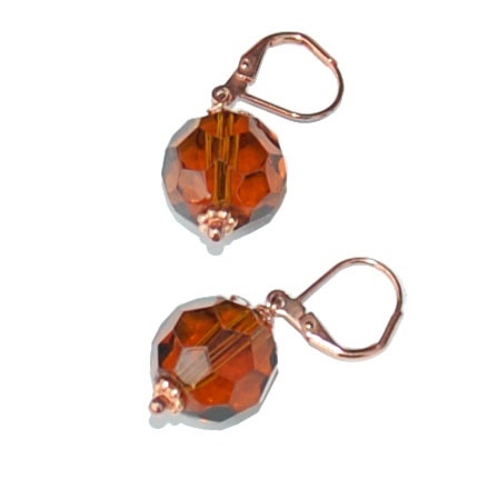 Øredobber i kobber med store, brune mc-krystaller (14mm i diameter).