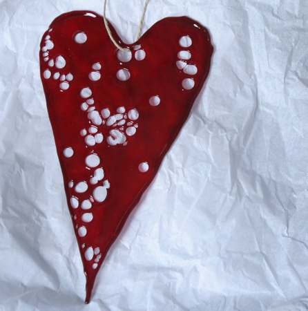 Stort avlangt glasshjerte, blodrød