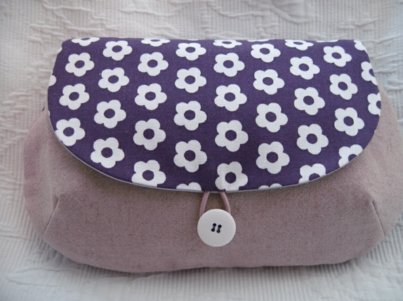 Liten veske eller toalettmappe - lin og lilla retro