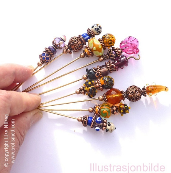 Dette er en håndlaget nål som kan brukes som hattenål, jakkenål, sjal, veskepynt....