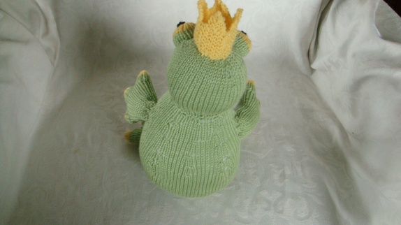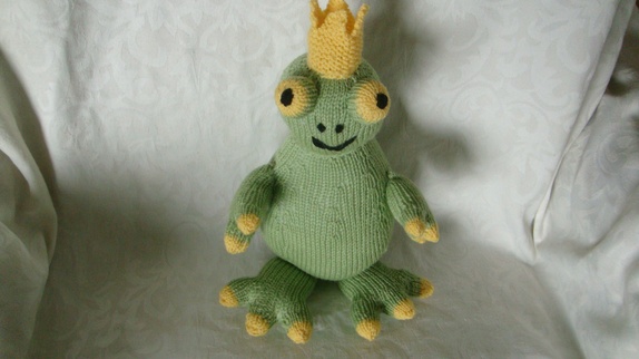 Jeg tror ikke Froggi forandrer seg til en flott prins,hvis du kysser han,men han er bløt og god.Froggi er strikket i 100% merino ull.Som kan vaskes på 40 grader,men pga fyllvatten anbefaler jeg 30 grader.Høyden til Froggi er ca 32 cm.