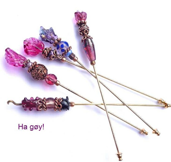 Pinner til ymse bruk!Håndlagde glassperler, bronse, kobber og tsjekkiske glassperler.