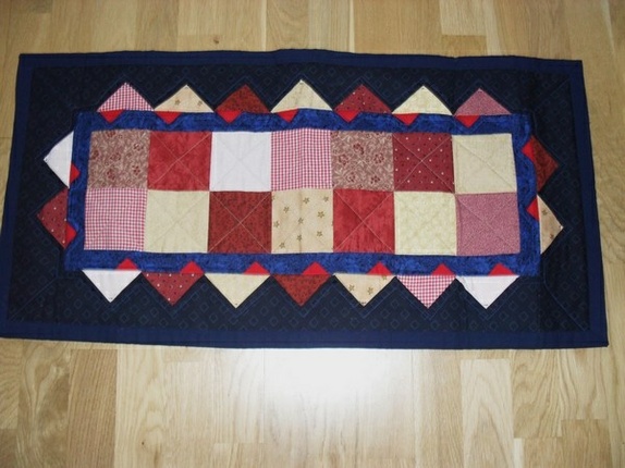 Duken er i blått/rødt og hvittStørrelse: 42 x 82 cmMønster er fra Familien i 2005