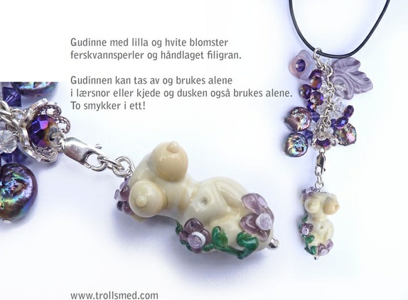 Vakker lilla gudinne som kan brukes både med og uten dusk, eller brukes som to smykker.