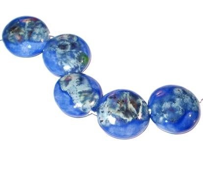 Pakken inneholder 5 stk perler av keramikk, som er håndformet runde og glatte, deretter glasert med farge.